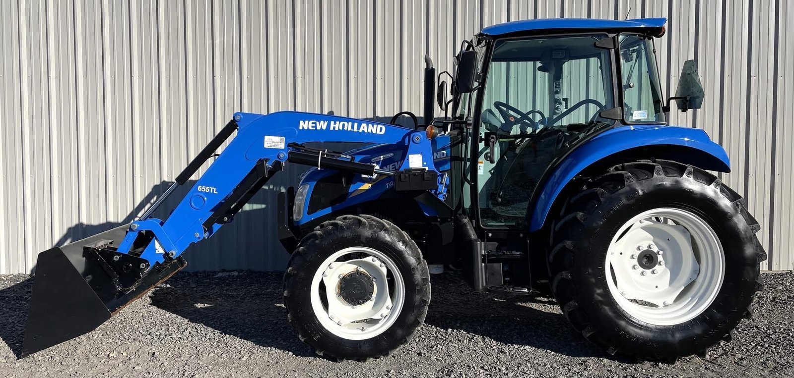 2021 New Holland T4.75 With Quick Attach Loader & Bucket, 613 Hours, 4×4, 75 HP Diesel Engine, 2 Rear Remotes, 540 PTO, 3 Point Hitch, Extendable Draft Links, Cab, Heat, A/C, Radio, Power Reverser, Tilt Steering Wheel, Air Ride Seat, Buddy Seat, Joystick Loader Controls, Cab Mirrors, Cup Holder, Front And Rear Windshield Wipers, Toolbox, Fluid Filled Rear Tires, Grill Guard, Clean Tractor! No Known Issues.