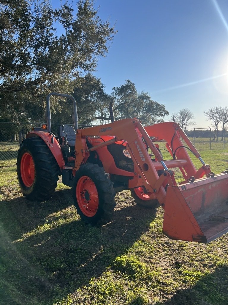 2008 Kubota M6040, 64 horsepower diesel engine with 2050 hours, loader with skid steer bucket, 2 sets of rear remote hydraulics, 440 pto, hydraulic shuttle transmission.