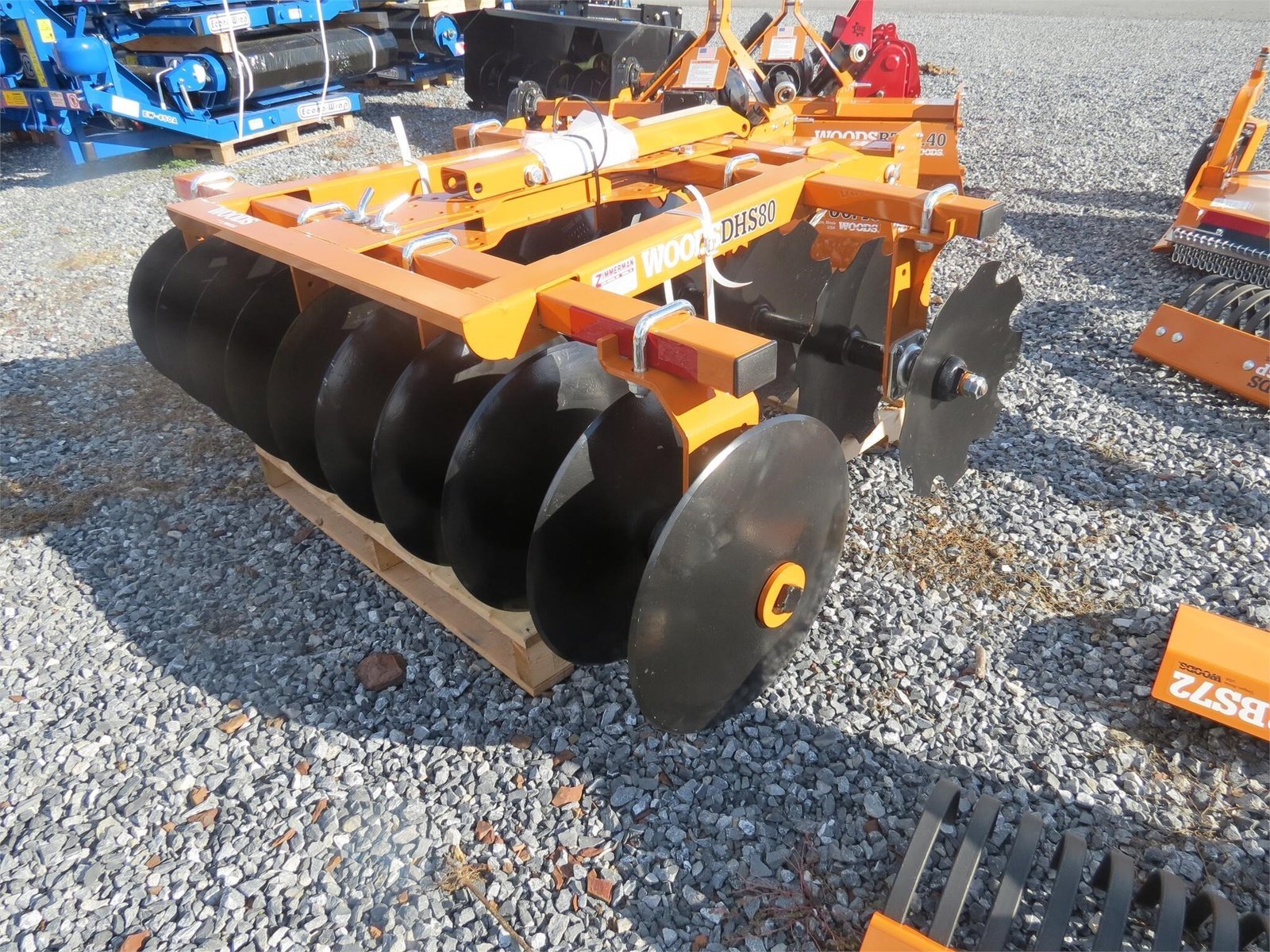 2022 WOODS, DHS80 Tillage Equipment – Disks, 80-inch working width Tractor HP range: 35-55Rugged, tapered frame and durable bearing hangers extend work life Notched blades cut into the dirt; smooth blades leave a fine finish Independent disc blade gangs adjust easily Lubed-for-life ball bearings ensure long-lasting performance Quick-hitch compatible Serial Number.
